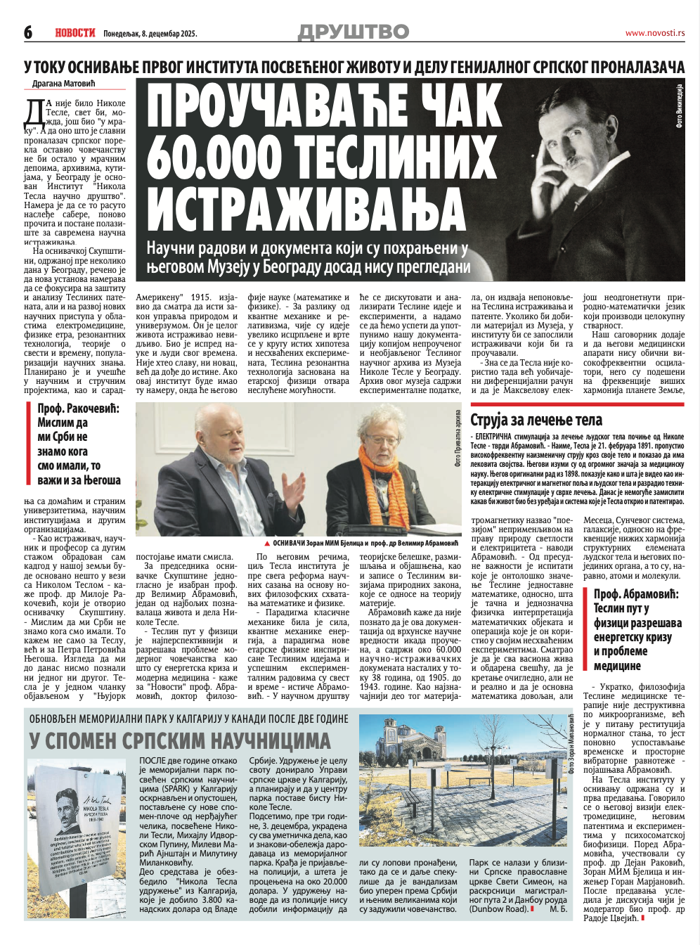 U Beogradu je 29. novembra 2025. godine u hotelu Crystal Hotel Belgrade, u svečanoj sali „Nikola Tesla“, održana tribina i osnivačka skupština povodom formiranja Instituta „Nikola Tesla“ i Naučnog društva „Nikola Tesla“ – naučnih organizacija posvećenih razvoju i afirmaciji Tesline vizije, elektromedicine i savremenih istraživanja iz oblasti fizike etra, rezonantnih tehnologija i